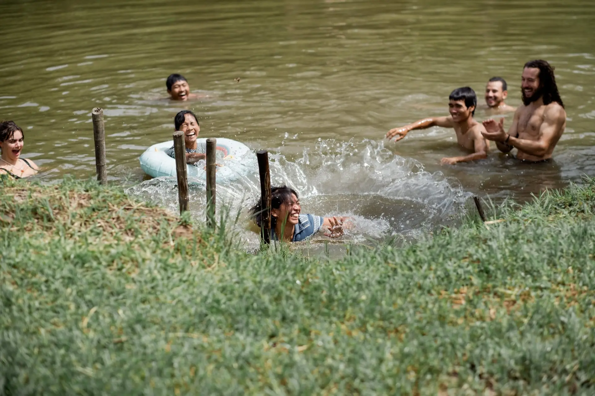At Pun Pun we live in community. This means we share our daily lives, our meals, and our work together on the farm with each other. At present there are around 20 community members living and working at Pun Pun which enables us to try many new projects and support each other to continue learning, whether that’s through farming techniques, building, raising children, or community projects. We feel we can do so much more in community and think it’s helped us expand our ideas.