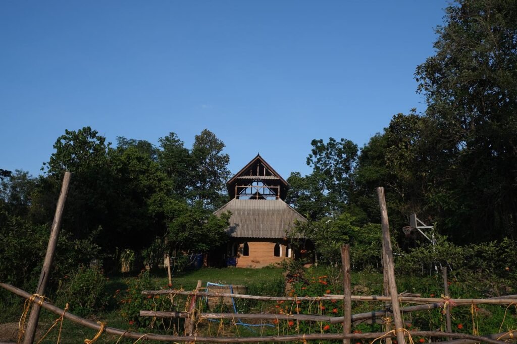 Facilities include a rounded earthen meeting hall capable of receiving many sizes of groups from 5 to 50 people. Our kitchen can provide delicious, fresh, homemade healthy food and the Pun Pun Cafe serves fresh coffee, fruit shakes and homemade snacks if arranged in advance. We have simple, natural accommodation in the farm for various needs.